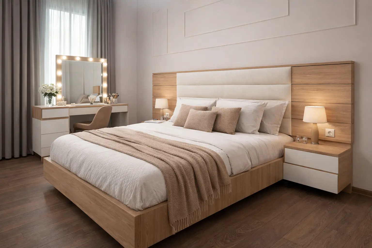 Our custom bedroom solutions include beds, wardrobes, storage systems, nightstands, and built-in furniture.